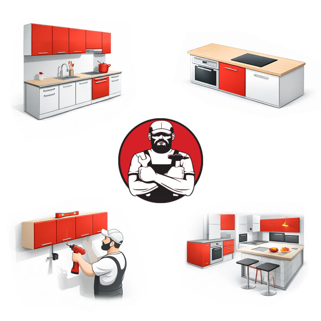 Montaža kompletnih kuhinja je naša specijalnost. Donji elementi sa nivelisanjem (što je ključno za radnu ploču), viši elementi sa preciznim poravnanjem, ugaoni elementi sa obrtnim mehanizmima ili posebnim ugaonicama.